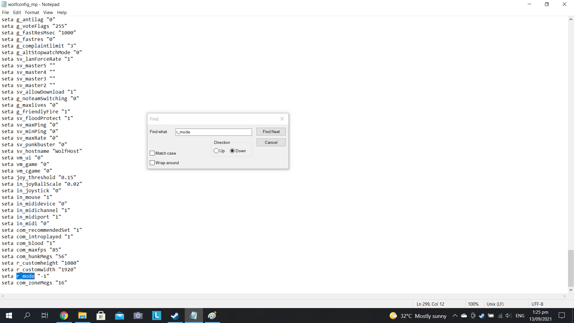 Observe your wolfconfig_mp.cfg file inside common\Return To Castle Wolfenstein\Main and open up it with notepad