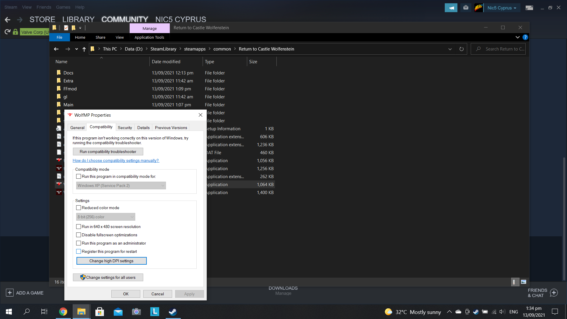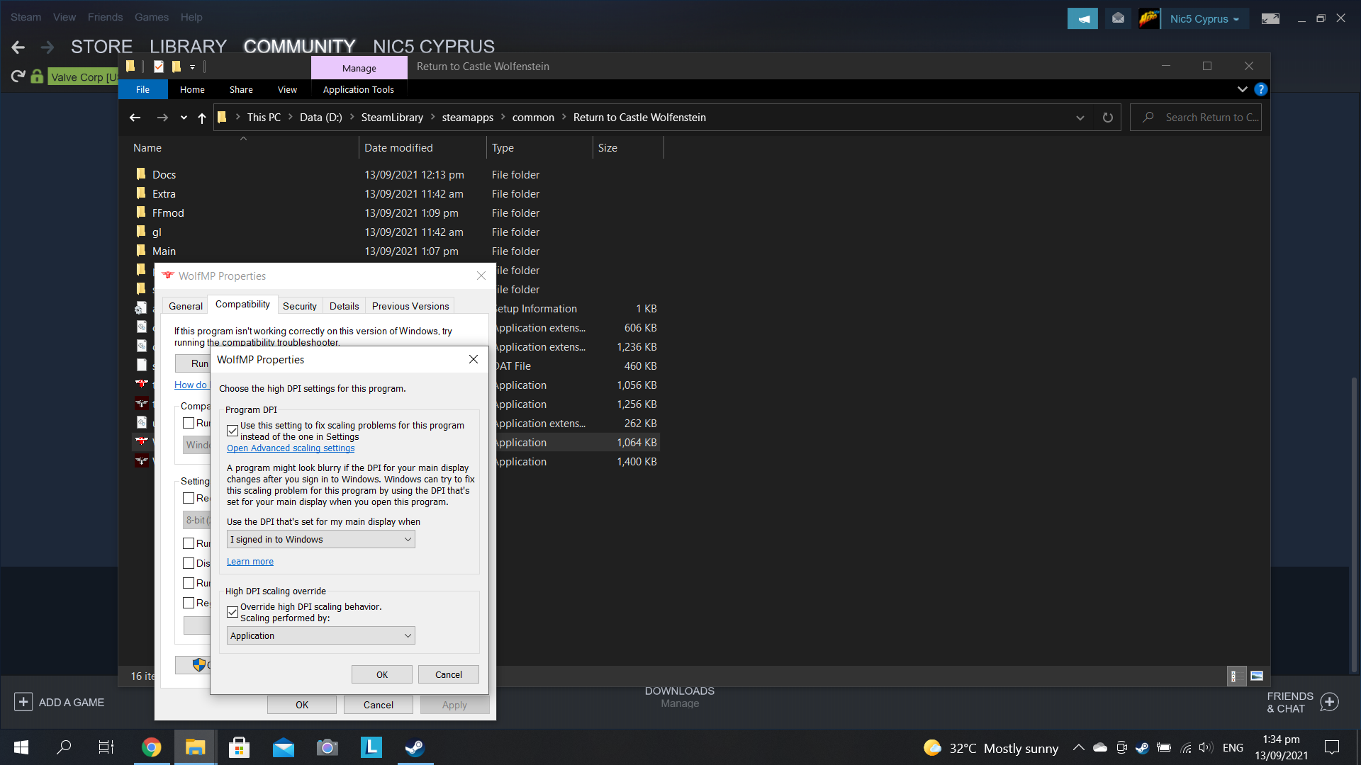 Launch the multiplayer. If everything looks fine, you're all set. If the screen is all messed up then locate the WolfSP application (found in common\Return To Castle Wolfenstein), right click and select properties. Then get to compatibility and click on the "Alter high DPI settings" box.